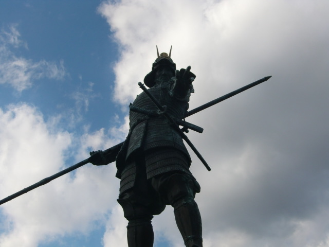 長曾我部元親初陣の像。