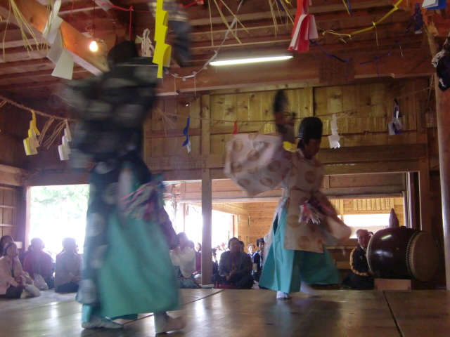 花取り踊りの方は民族踊りって感じ。花をかたどった?被りものして、剣やら太鼓やらを持って踊る。僕が神楽に魅入ってる間にどうやら終わってしまったよう・・・。最初の方は見たけどね。